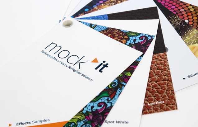 Our mock>it effects booklet demonstrates finishes such as spot white, spot varnish, leather, raised metallic, silver, golden, holographic and more.